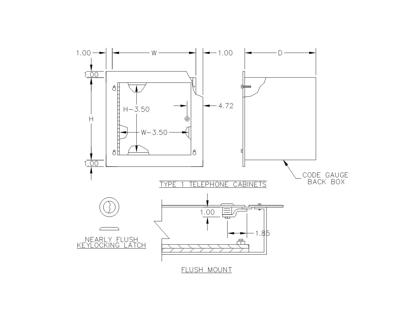 TYPE 1 PAINTED HINGED TELEPHONE CABINET W/ KEYLOCKING LATCH & FLUSH COVER