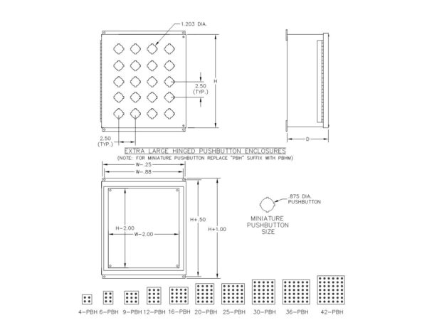 TYPE 12 PAINTED XL PUSH BUTTON ENCLOSURE W/HINGED COVER & PANEL