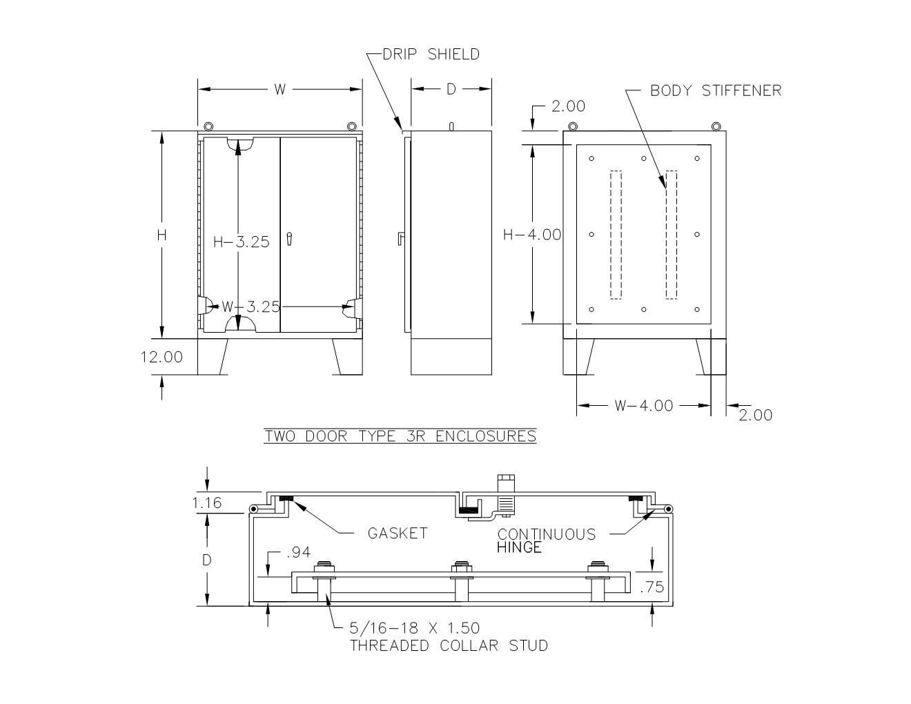 TYPE 3R PAINTED DOUBLE DOOR FLOOR MOUNT ENCLOSURE