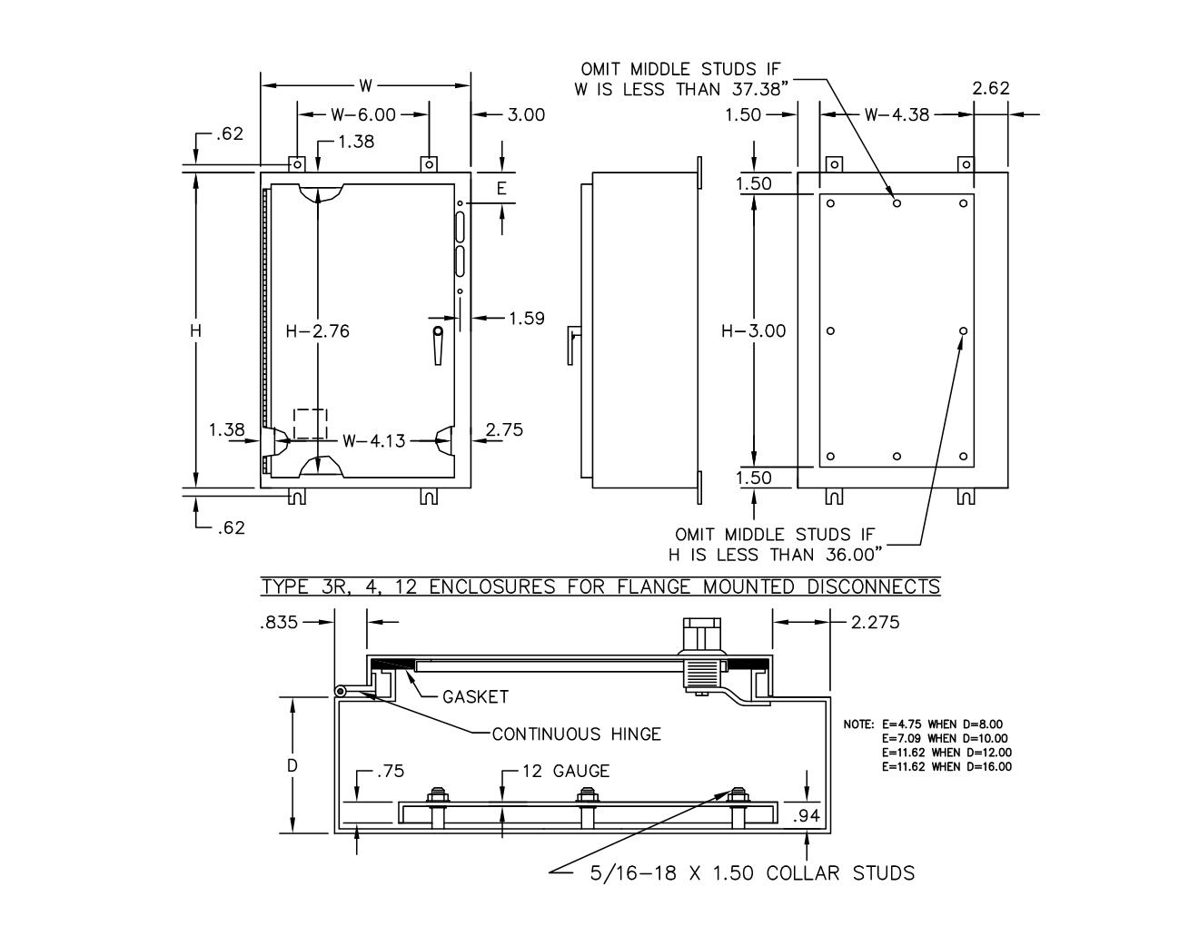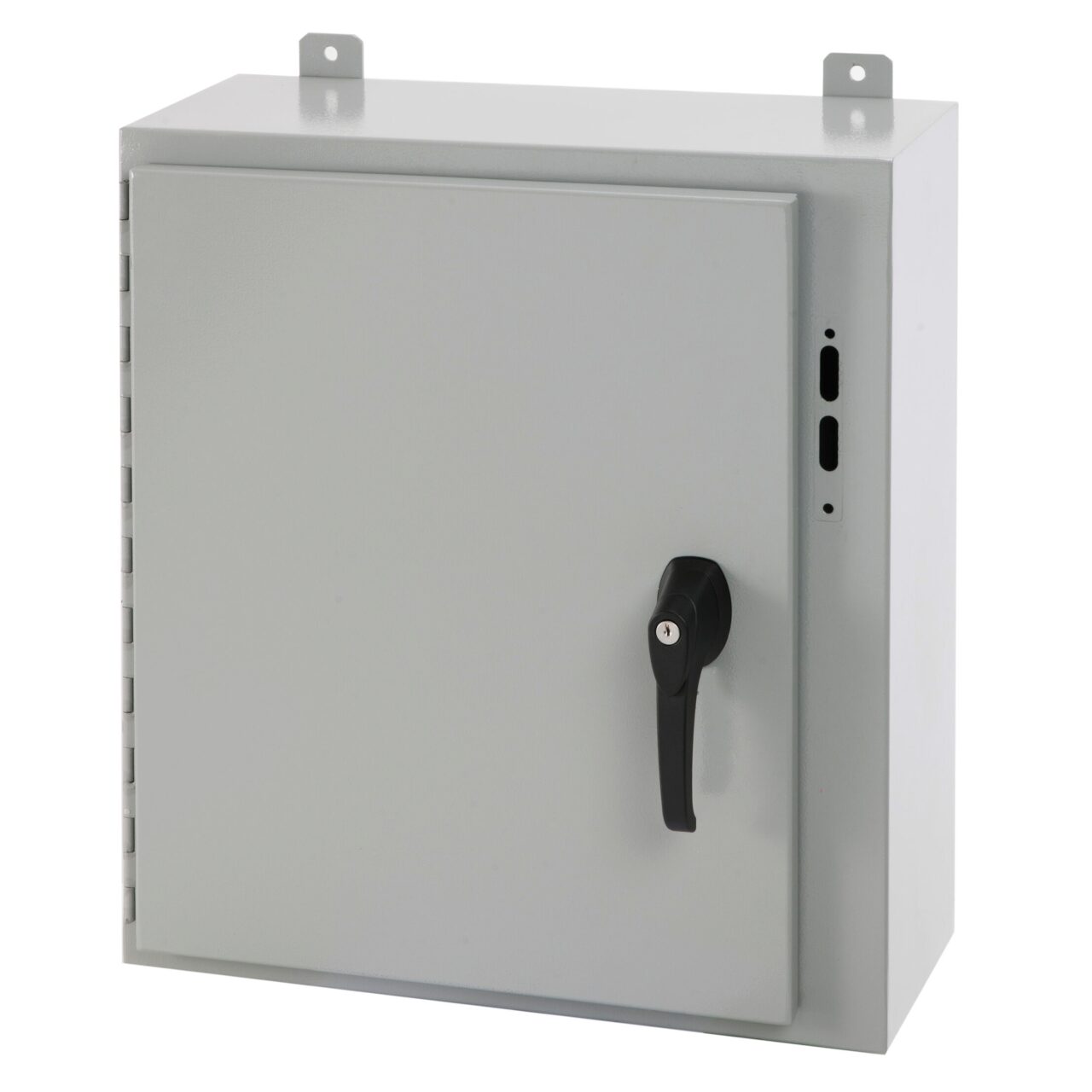 TYPE 4, 12 PAINTED SINGLE DOOR FLANGE-MOUNTED DISCONNECT ENCLOSURE WITH 3 POINT LATCH & EBOX 1S PADLOCKING HANDLE