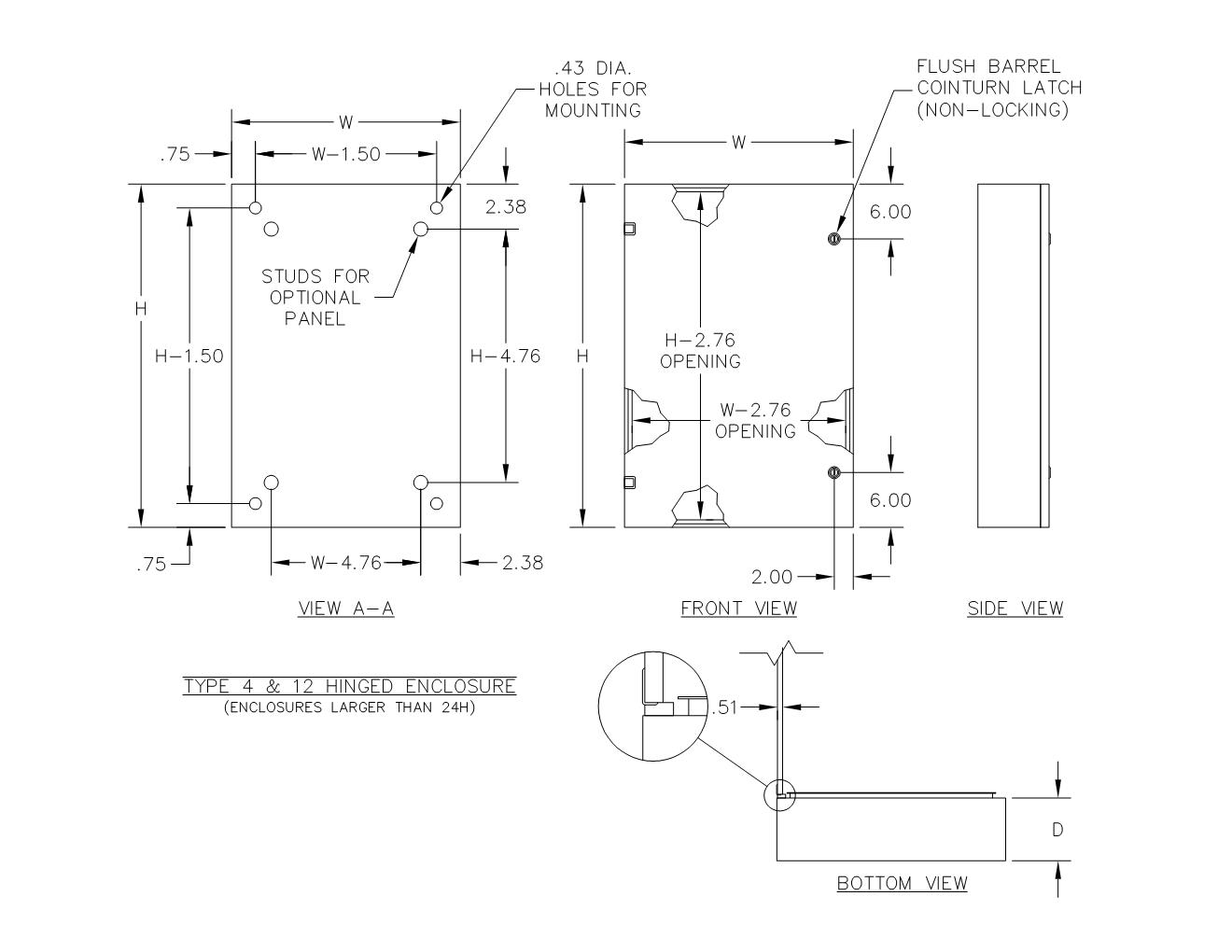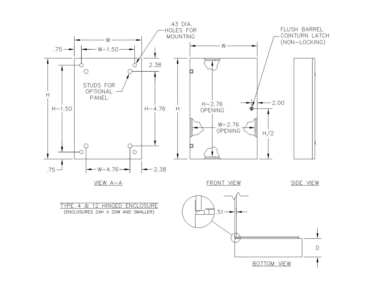 TYPE 4 & 12 SINGLE DOOR PAINTED HINGED ENCLOSURE W/ COINTURN LATCH(S)