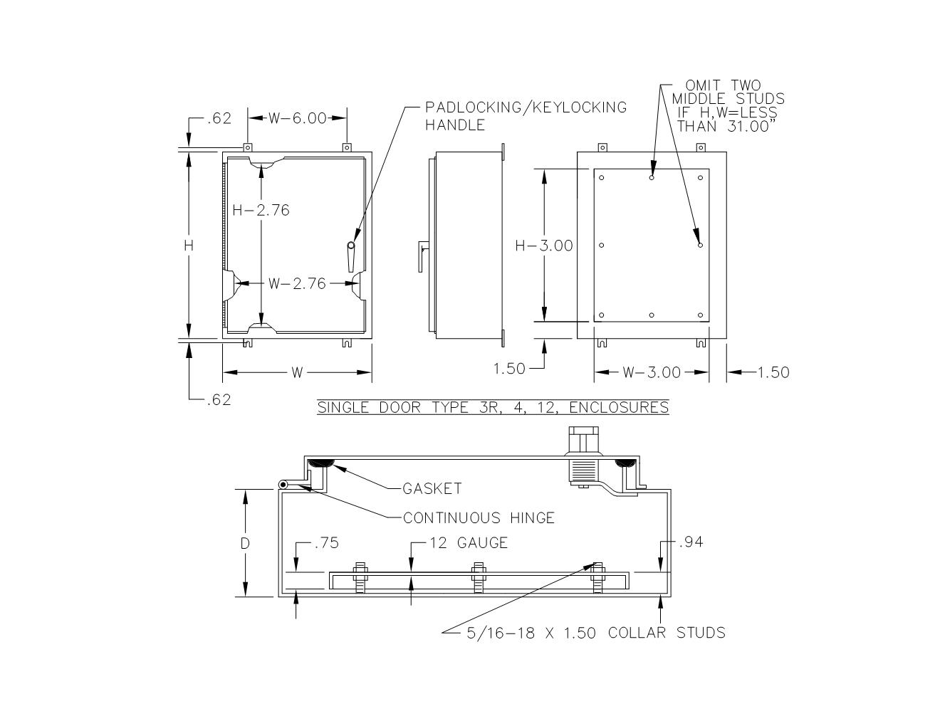 TYPE 4 PAINTED SINGLE DOOR CONTINUOUS HINGE ENCLOSURE WITH 3 POINT LATCH & KEYLOCKING/PADLOCKING HANDLE