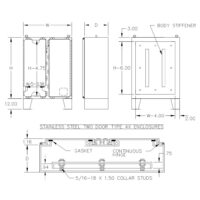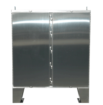 TYPE 4X 304 STAINLESS STEEL HINGED DOUBLE DOOR FLOOR MOUNT ENCLOSURE W/ CLAMPS