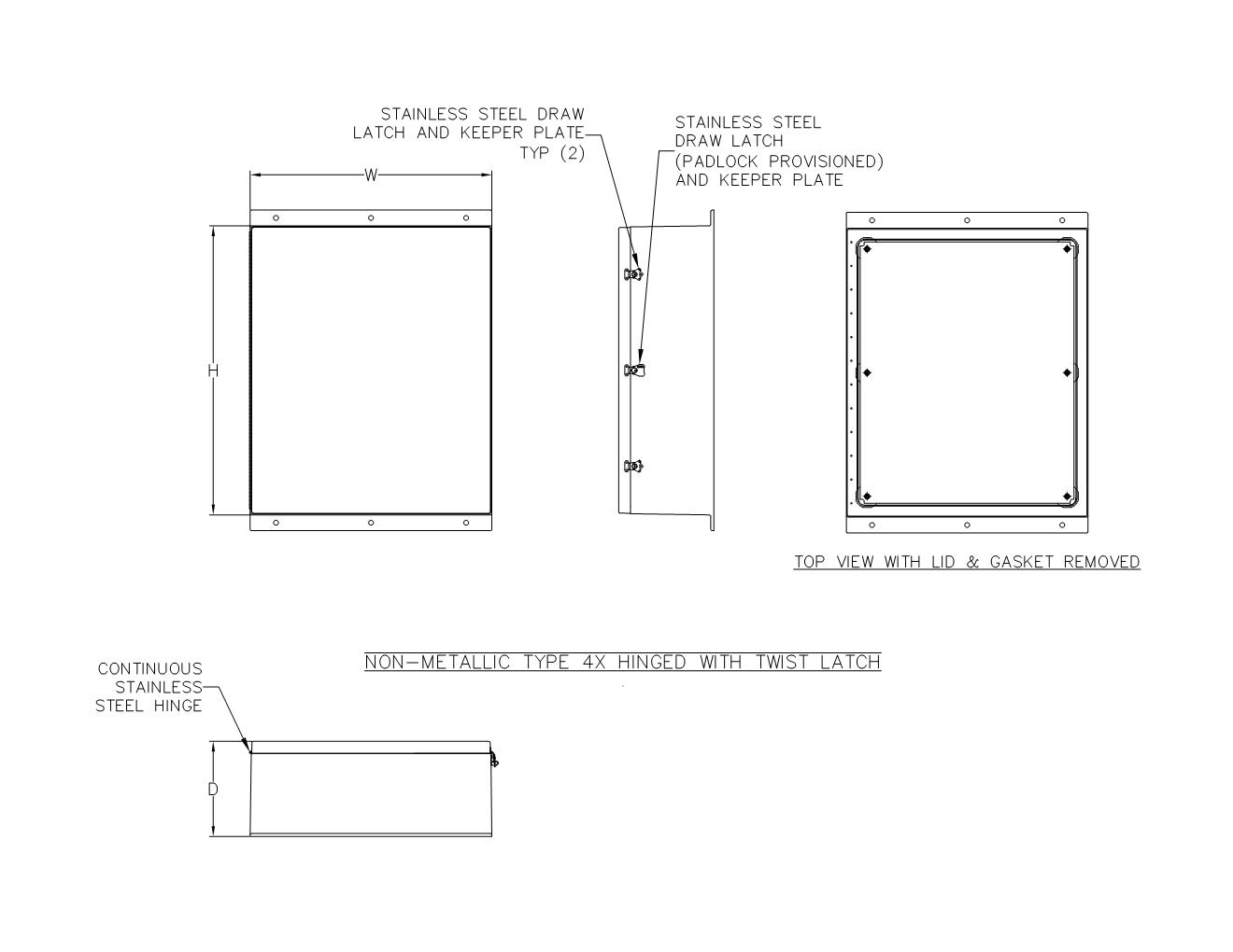 TYPE 4X NON-METALLIC HINGED ENCLOSURE W/TWIST LATCH